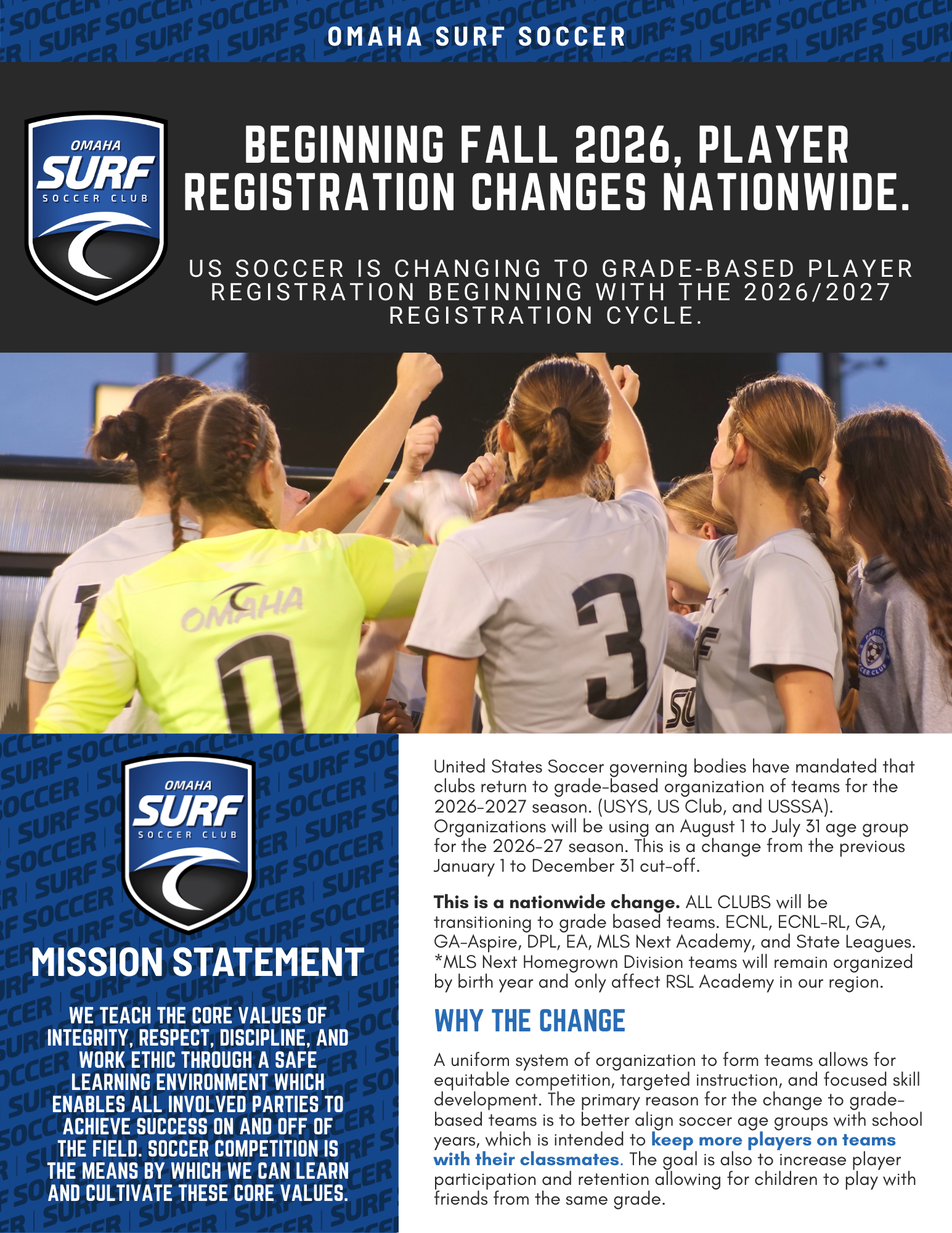 The goal of the change is to better align youth soccer with how children experience school, friendships, and social development. By preparing early, Omaha Surf can ensure that the transition feels positive and comfortable for our players.