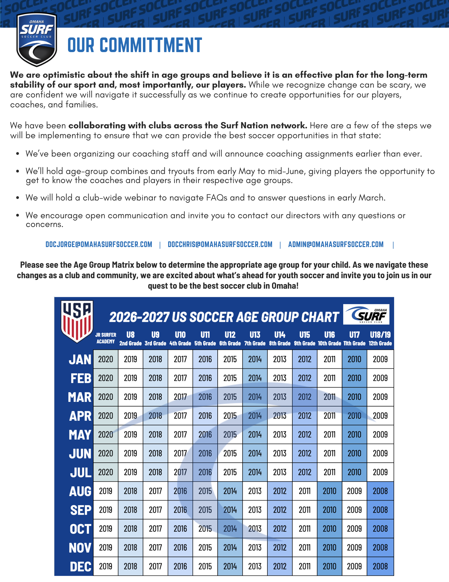 Omaha Surf – 2026/27 Age Group Transition FAQ